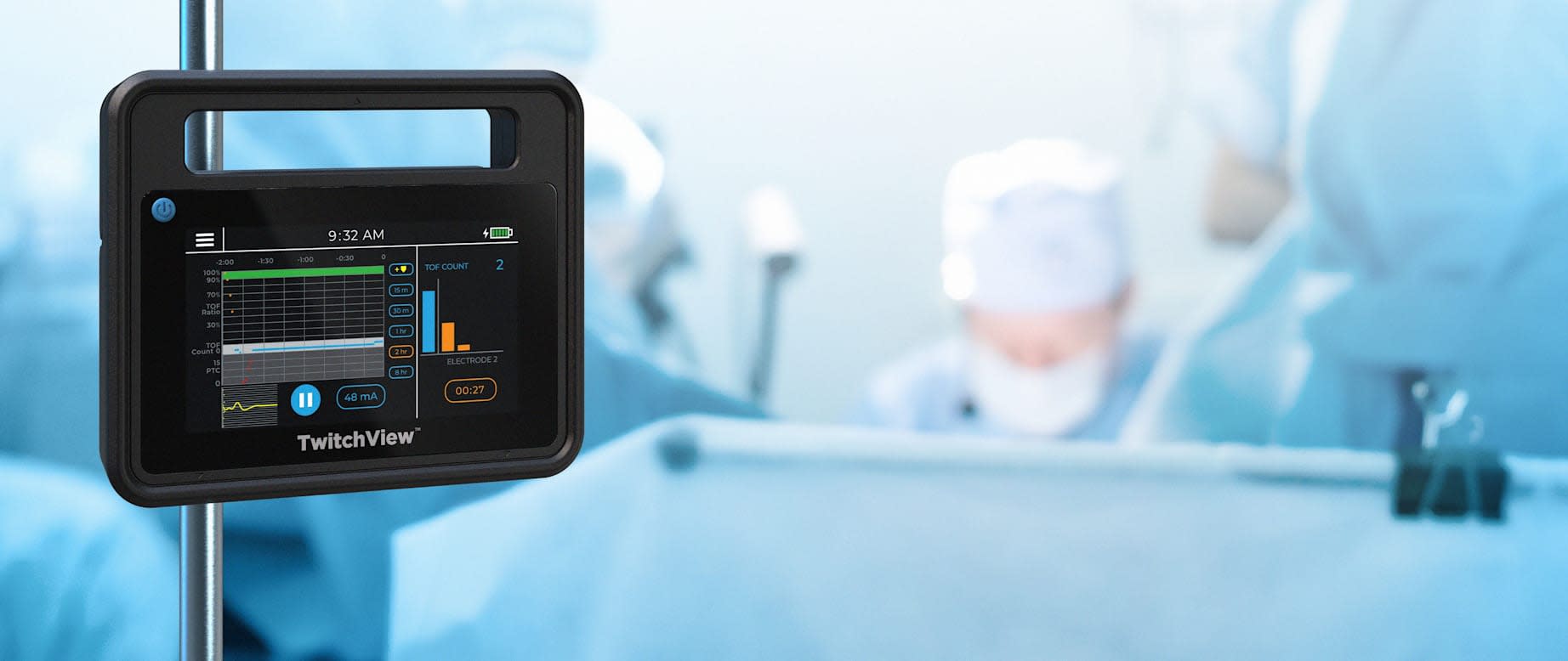 Los estudios, el único monitor de electromiografía (EMG) tren de cuatro clínicamente validado, demuestran que TwitchView mejora el manejo del bloqueo neuromuscular, optimiza el antagonismo y puede eliminar el bloqueo neuromuscular residual.